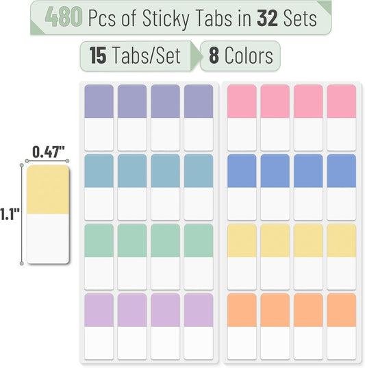 Mr. Pen- Sticky Index Tabs, 480 Pcs, Pastel Sticky Tabs for Notebooks, Page Markers