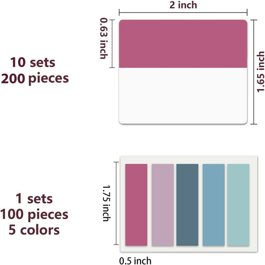 ELII 300 PCS Sticky Index Tabs 2 Inch Book Tabs Writable and Repositionable Page Markers File Tabs Self Adhesive, Labels for Pages Notebooks