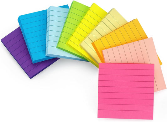 Early Buy Lined Sticky Notes with Lines 3x3 Self-Stick Notes 9 Bright Color 9 Pads, 70 Sheets/Pad