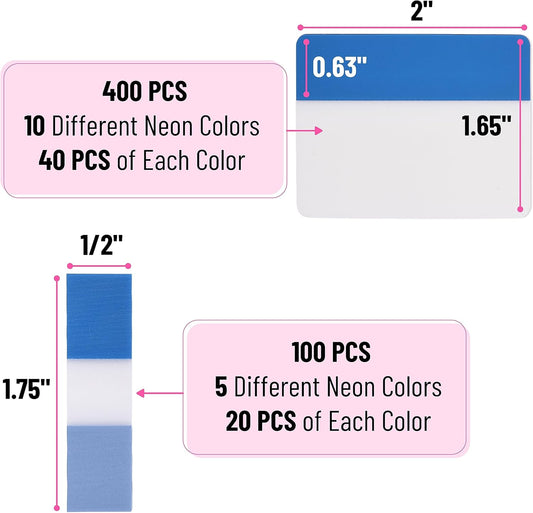 ELII 500 PCS Sticky Tabs 2 Inch Index Tabs,Page Markers File Tabs Self Adhesive, Labels for Pages Notebook
