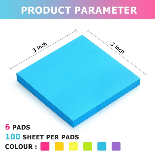 Sticky Notes 3x3 Pop Up Self-Stick Notes Pads with 6 Bright Colors, Easy to Post for Office, School, Home, 6 Pads/Pack, 100 Sheets/Pad(Pop Up)