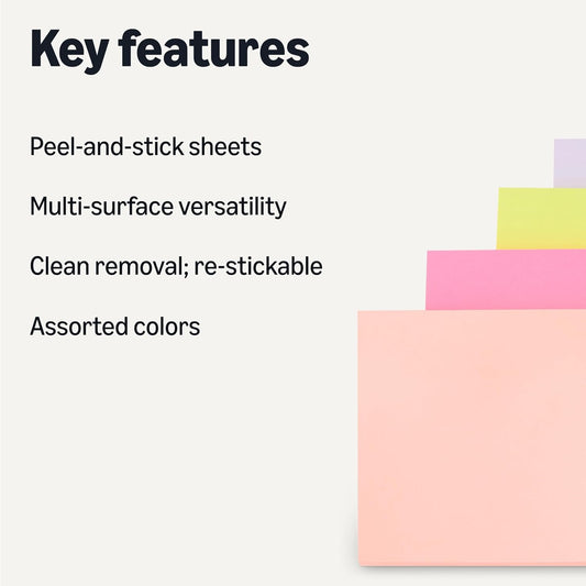 Amazon Basics Sticky Notes, 3x3 Inches, Assorted Colors Self-Stick Pads, Easy to Post for Home, Office, Notebook, 70 sheets/Pad, Pack of 12
