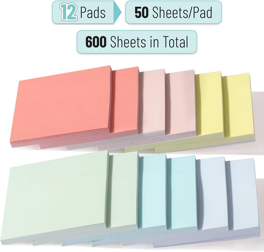 Mr. Pen- Sticky Notes, 3”x3”, 12 Pads, 600 Sheets, Macaroon Colors Sticky Notes, Sticky Note, Self-Stick Note Pads, Back to School Supplies