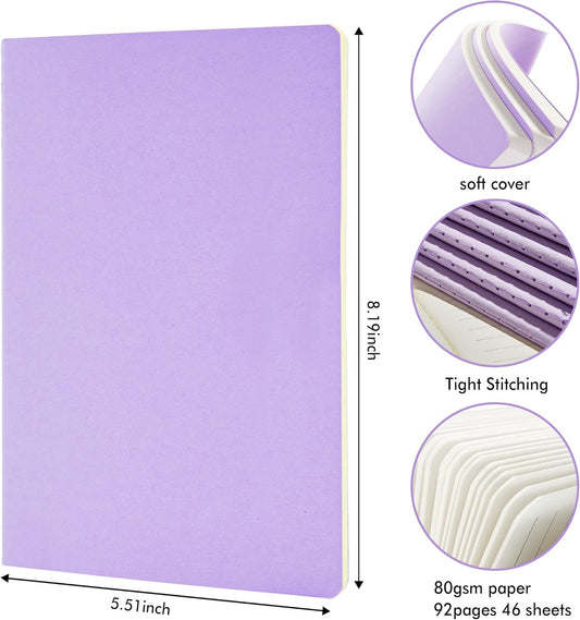 feela 36 Pack Soft Cover Journal Bulk, Lined Blank Travel Journal for Women Men Writing, Notebooks College Ruled for Work, Note Taking Notebook School Business Supplies, 8.2” x 5.5”, A5, Light Purple