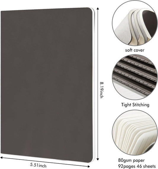 feela 16 Pack Soft Cover Journal Bulk, Lined Notebooks College Ruled for Work for Women Girl Writing, Blank Travel Journal Note Taking Notebook School Business Supplies, 8.2” x 5.5”, A5, Gray