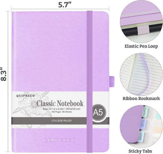 2Pack Lined Hardcover Journal Notebook, A5 192 Pages 100Gsm Thick Paper College Ruled for School,Note Taking,Work,Diary,5.7"*8.3",Lavender