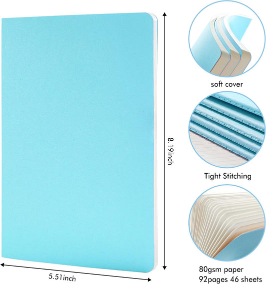 feela 16 Pack Soft Cover Journal Bulk, Lined Notebooks College Ruled for Work for Women Girl Writing, Blank Travel Journal Note Taking Notebook School Business Supplies, 8.2” x 5.5”, A5, Blue