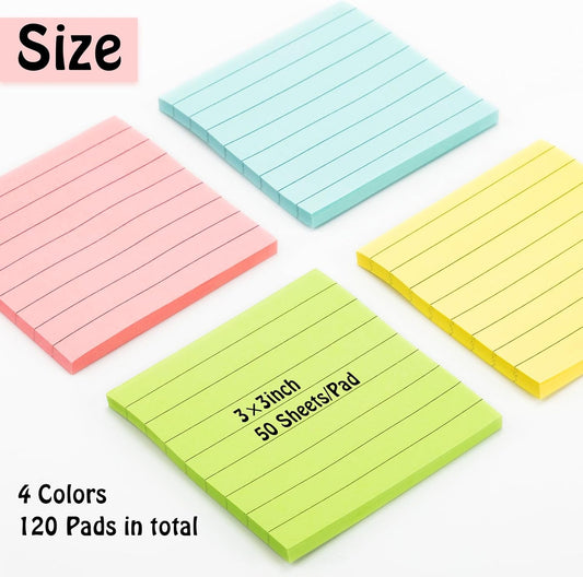 Fainne 120 Pack Sticky Notes 3x3 Bulk Back to School Supplies Self Stick Note Pads Lined Adhesive Paper Memo Colorful Gifts for First Day of School Student Teacher Office, 50 Sheets/Pad