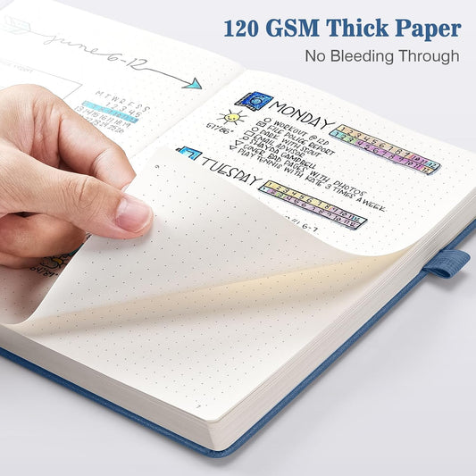 Dotted Journal Notebook 3 Pack, A5 Hardcover Notebook with 120gsm Thick Dotted Paper, Leather Journals for Women, Men, Dot Grid Notebook Journal for Writing, Notebooks for Work, School, 5.75" × 8.38"