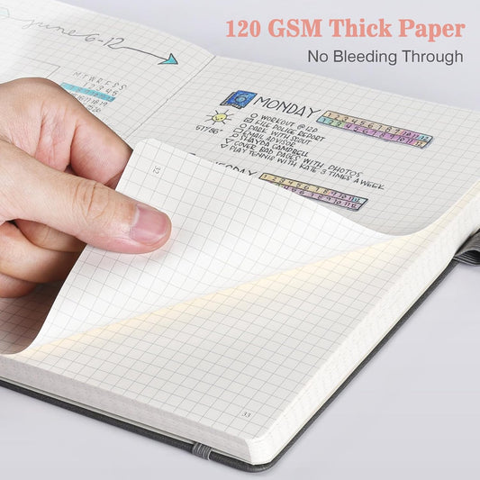 EMSHOI Graph Paper Notebook 256-Page A5 Grid Journal, PU Leather Hardcover 120gsm Thick, Bleed-Resistant Paper, Portable 5.75” x 8.38” Size for Work, Math, Engineering– Dark Grey