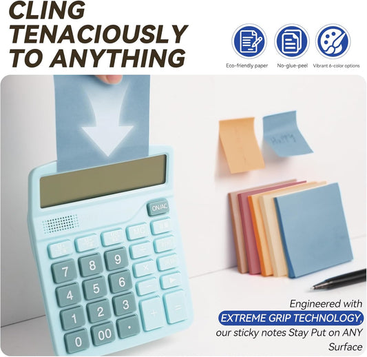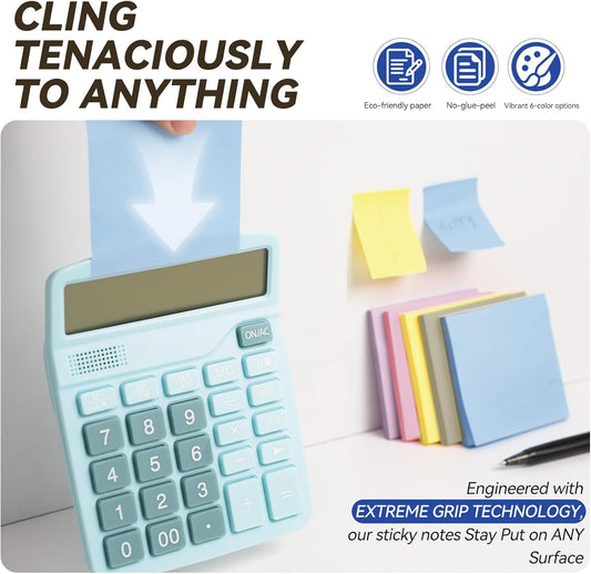 Sticky Notes 3x3in + 2x1.5in Small Sticky Note, 12 Pack 6 Colors Self-Sticky Note Pads | Sticks Strong & Removes Clean | Recycled Paper Cute Sticky Notes to School Supplies, Office Products