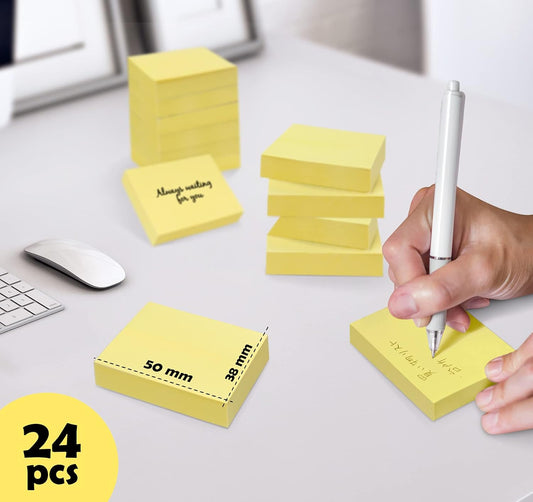 24 Pads Mini Sticky Notes,2 x 1.5 Sticky Notes Small,2400pcs Notes Pads,Strong Self-Adhesive Notes,Yellow Bulk Tiny Pads Easy to Post Notes for Office Supplies,School,Daily Life(100 Sheets/Pad)