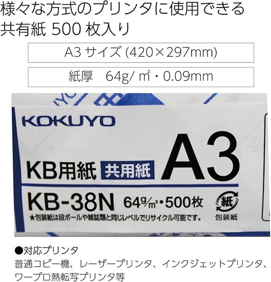 Kokuyo A3 (11.7 in x 16.5 inches) KB Paper, 500 Sheets, 64gsm, 80 Bright - Perfect for Engineering technical drawings - FSC Certified, Japan Import (KB-38N)
