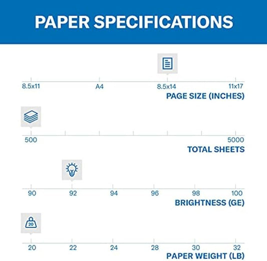 Hammermill Printer Paper, 20 lb Copy Paper, 8.5 x 14 - 10 Ream (5,000 Sheets) - 92 Bright, Made in the USA, 105015C