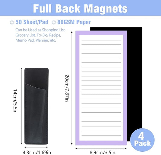 4 Pack Magnetic Note Pad for Fridge with Pen Holder, Totally 200 Sheets Magnetic To Do List, Grocery List, Shopping List, Memo Pads for Refrigerator(Dark Color)