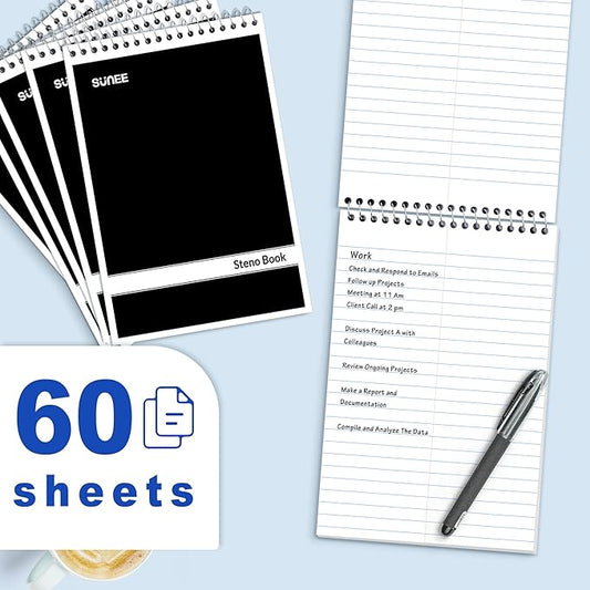 SUNEE 12 Pack Steno Pads 6x9, Gregg Rule, 60 Sheets, Spiral Notebook 6x9, White Paper, Take Notes with Top Spiral Notebook, for School, University, College, Work, Office, Black