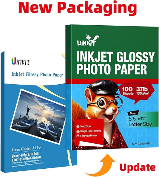 Uinkit 37lb Thin Flyer Paper Glossy 8.5x11 Inkjet 100 Sheets Single Side DIY Chip Bag 135gsm Printer Picture for Inkjet Printer with Dye Ink Letter size A4 Brochure (8.5X11X100)