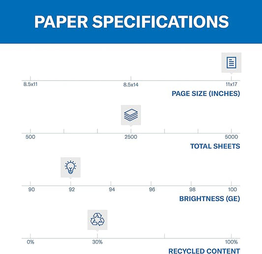 Hammermill Printer Paper, Great White 30% Recycled Paper, 11 x 17-5 Ream (2,500 Sheets) - 92 Bright, Made in the USA, 086750C