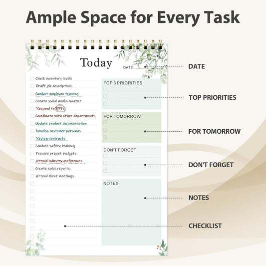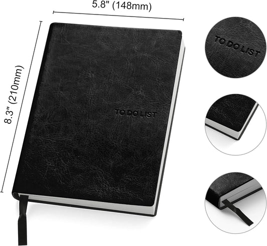 Daily to Do Checklist Notebook, Task Management, Organizer Planner, Hardcover, Ribbon Bookmark, 5.8 x 8.3”, A5 size, 110 Sheets (Black)