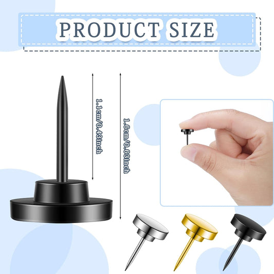 50 PCS Thumb Tacks for Wall Picture Hangers, Double Headed Picture Hanging Nails Kit, Push Pins Wall Hooks, Renter Friendly Decor Thumbtacks for Tapestry Frame Art Photos(Black &Gold)