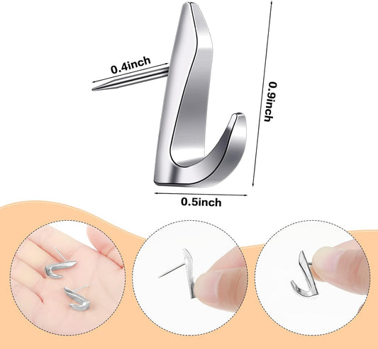 Ferraycle 30 Pieces Metal Push Pin Hangers 20 lbs Picture Hooks Zinc Alloy Thumb Tacks Hanging Hooks with Nails for Home Office Fabric Wall Wooden Board (Silver)