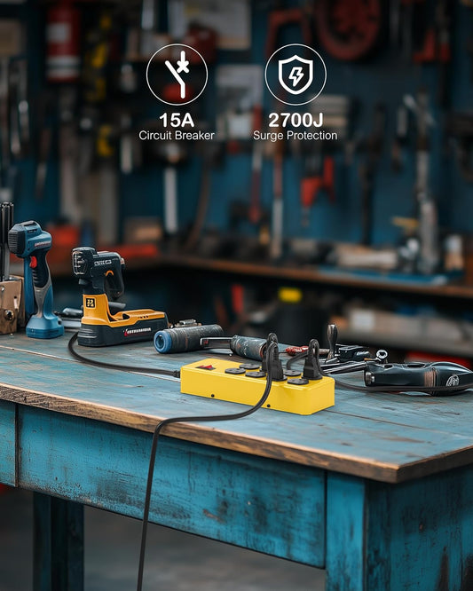 Heavy Duty Power Strip,Industrial Heavy Metal Case Surge Protector,8 AC Outlets,15Amp,2700 Joules,Protected' Indicator,14 Gauge Cord (Yellow, 6FT Length)