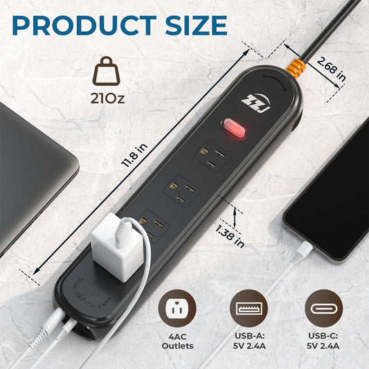 Surge Protector Power Strip,7-in-1 with 6 FT Flat PlugExtension Cord,Surge Protector,with 3 AC Outlets 2USB A,2USB C Outlets for for Home, Office, Dorm Essentials,UL FCC Listed Visit The ZZJ Store