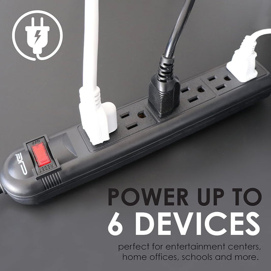 Digital Energy 6-Outlet Surge Protector Power Strip with 15-Ft Long Extension Cord, Black, ETL Listed/UL Standard