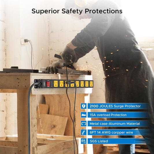 CRST Heavy Duty Surge Protector Power Strip 10-Outlet Metal Industrial Power Strip with 2800 Joules, 15A Circuit Breaker, 14 Gague 6ft Extension Cord for Workshop, Garage, Office, School…