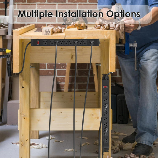 JUNNUJ Multi Angle Mount 10 Outlet 20 Amp Power Strip Heavy Duty, 2700J Surge Protector Under Desk with Switch 20A, Garage Workbench Gaming Outlet Table Wall Mountable, 3FT 12AWG Extension Cord