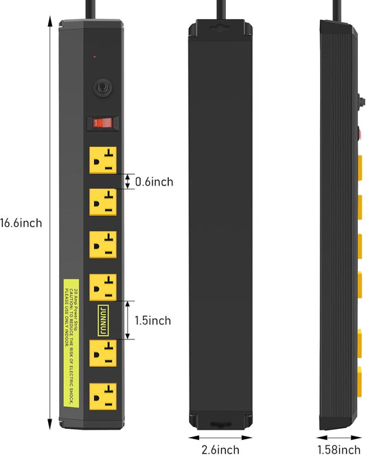 CRST 6 Outlet Surge Protector Power Strip 2100J with Switch, 15A/1875W Metal Heavy Duty Power Strip, Wide Spaced Wall Mount Power Bar for Garage Worshop Home School, 6 FT Cord( Black+Yellow)