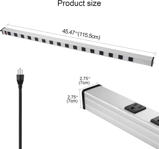16 Outlet Plugs Heavy Duty Metal Power Strip, Aluminum Workshop Socket with 10 FT Long Cord and Power Switch. 15A, 125V, 1875W Silver