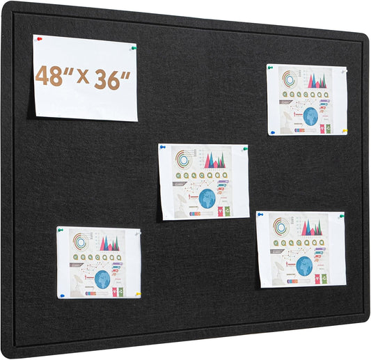 48"x36" Large Bulletin Board for Wall | Foldable Felt Notice Board with 30 Push Pins | Self-Adhesive Message Board for Office, Home & Classroom Decor (Black)