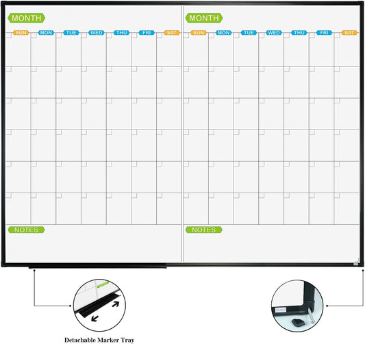 JILoffice Magnetic Dry Erase Calendar Whiteboard, 2 Month White Board Planner 48 X 36 Inch, Black Aluminum Frame Wall Mounted Board for Office Home and School