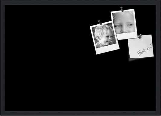 PinPix 28x22 Inch Cork Bulletin Board. This Decorative Framed Pin Board Comes with Solid Black Design and a Satin Black Frame. Ideal for Home Office Decor or Message Board (PinPix-622)