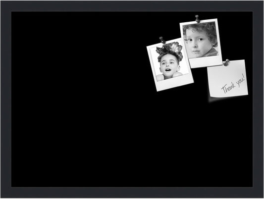 PinPix 22x16 Inch Cork Bulletin Board. This Decorative Framed Pin Board Comes with Solid Black Design and a Satin Black Frame. Ideal for Home Office Decor or Message Board (PinPix-622)
