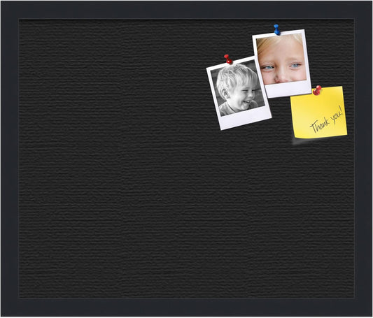 PinPix 23x17 Inch Cork Bulletin Board. This Decorative Framed Pin Board Comes with Solid Black Design and a Satin Black Frame. Ideal for Home Office Decor or Message Board (PinPix-622)