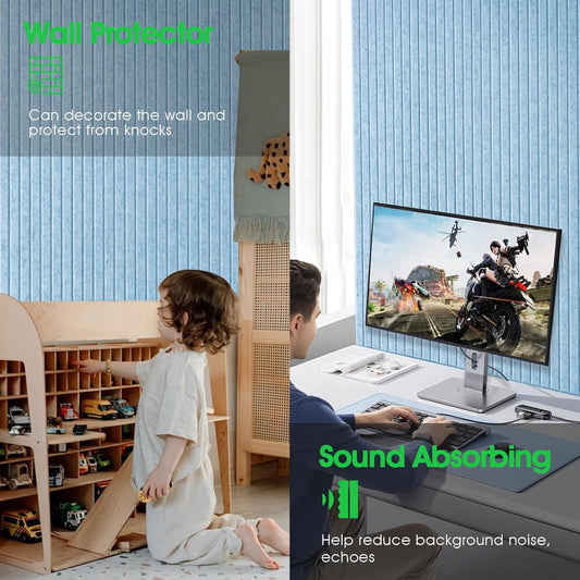 Large Cork Board for Office, 8 Pack Felt Wall Tiles with Slat Wall Paneling, Felt Bulletin Board Pin Board Cork Boards for Walls - Light Blue