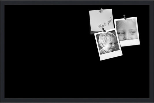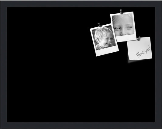 PinPix 22x17 Inch Cork Bulletin Board. This Decorative Framed Pin Board Comes with Solid Black Design and a Satin Black Frame. Ideal for Home Office Decor or Message Board (PinPix-622)