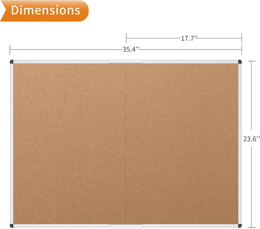 VIZ-PRO Cork Bulletin Board/Foldable Noticeboard, 36 X 24 Inches, Silver Aluminium Frame