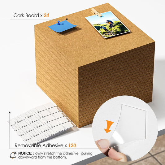 MaxGear 72" x 48" Large Cork Board for Wall, 24 Pack Cork Board Tiles with 40 Pushpins & Safe Removable Adhesive Tabs, 12" x 12" Corkboards for Office, School, Home
