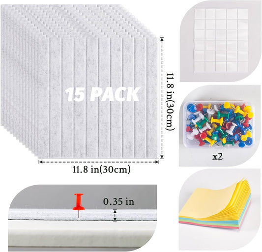 Large Cork Board Alternative, 15 Pack Felt Board with Safe Removable Adhesive Tabs Felt Wall Tiles, Large Cork Boards for Walls, Cork Board for Home Office, Pin Boards for Walls, Stripe Marble White