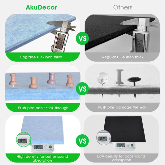 Large Cork Board for Office Wall Decor,48"x36"-12 Pack Felt Wall Tiles with 35 Push Pins, Thicker 0.47in, Felt Bulletin Board Pin Board Cork Boards for Walls - Light Blue