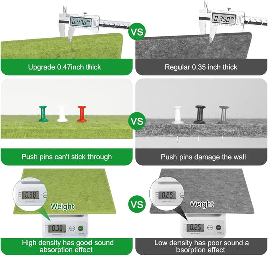 Large Cork Board for Office Wall Decor,48"x36"-12 Pack Felt Wall Tiles with Safe Removable Adhesive Tabs, 1/2" Thick, Felt Bulletin Board Pin Board Cork Boards for Walls - Matcha Green