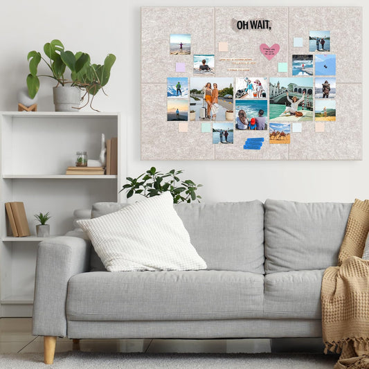 Bulletin Board, 35 x 17 1/2 inches Felt Board - Decorative Pin Board, Cork Board Alternative for Wall, Foldable Picture Board Self-Adhesive Vision Board Prayer Board with 20 Pushpins - Marble White