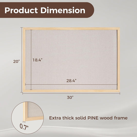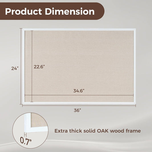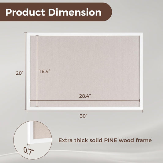 Cork Board Bulletin Board 18" x 24", Large Linen Corkboards with Frame for Walls, Cute Picture Display Pin Board Vision Board for Room School Office Bedroom 20 Pushpins Vintage White