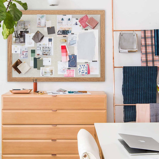 Bulletin Board - 35 x 17.5 inches Decorative Felt Pin Board - Cork Board Alternative for Wall - Foldable Photo Board Self-Adhesive Prayer Board with 20 Pushpins - Oatmeal
