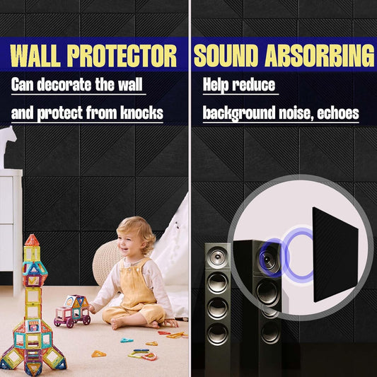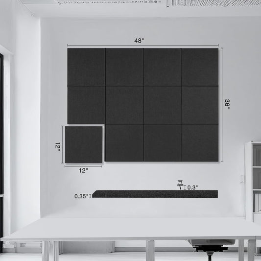Large Cork Board for Walls 48"x 36", 12 Pack Felt Wall Tiles with Safe Removable Adhesive Tabs, Cork Board for Office,Pinboard Bulletin Board - Black