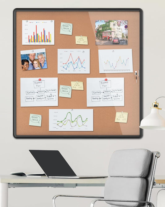 38"x38" Enclosed Bulletin Board, Lockable Weather-Resistant Aluminum Cork Noticeboard for School & Office Hospital, Black Frame w/Cork