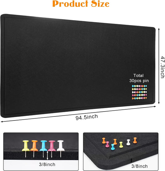Extra Large Bulletin Board, 96 X 48 inches Cork Board with 30 Pushpin, 8' x 4' Felt Cork Board Notice Pin Board, Self-Adhesive Vision Board Mood Board Foldable Photo Board for Wall - Black